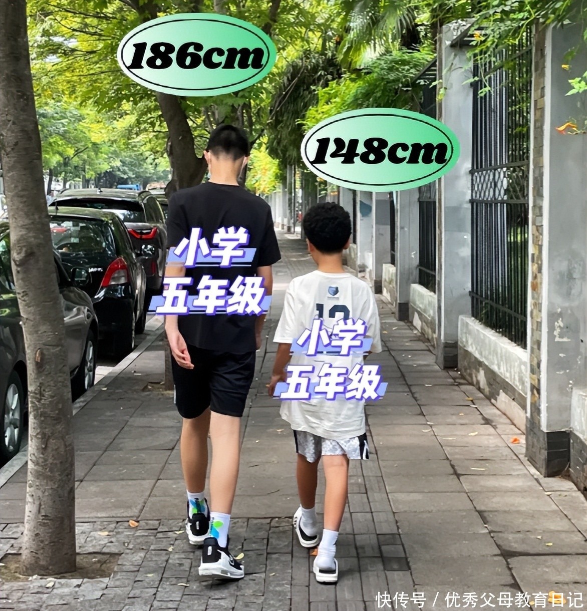 原来,这竟然是同一年级的两个好兄弟!这两个好朋友下课后一起出来玩耍,但由于身高差距明显,这一幕活生生地演绎成了父子俩的情景。