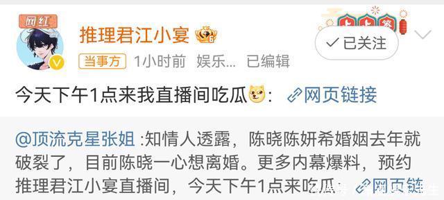 曝陈晓陈妍希婚姻破裂,双方社媒已经互相取关,男方一心只想离婚