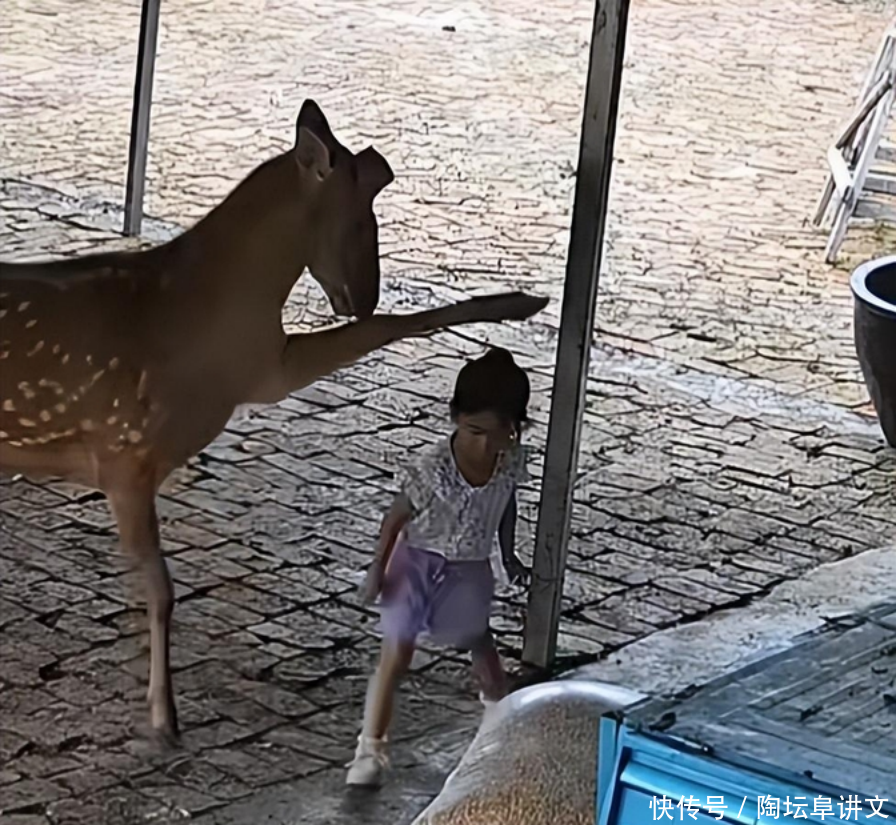 家里的小公主被自家的梅花鹿给欺负了,爸爸气冲冲地追了老远想要教训它,结果评论区的留言比故事本身还精彩。事情是这样的:一位父亲在家养了一只梅花鹿,那天他刚从车上卸下玉米,因为有点急事就匆匆离开了。梅花鹿看到地上的玉米,就跑过去大快朵颐,不小心把玉米袋弄倒了。女儿看到这一幕,便想上前扶正袋子。没想到,梅花鹿不但不领情,反而给了小姑娘一脚,小姑娘当场就摔倒在地。而梅花鹿呢,仿佛什么都没发生一样,继续悠闲地啃着草。