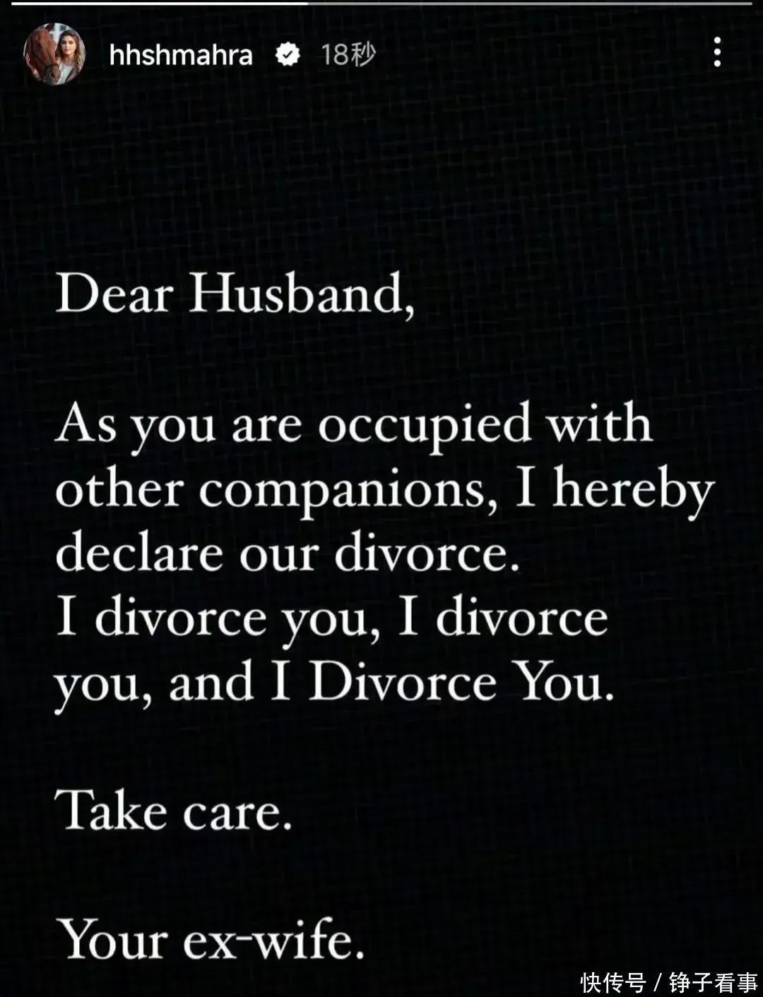 迪拜最美公主又现神操作,IG单方宣布和老公离婚,霸气重复三遍
