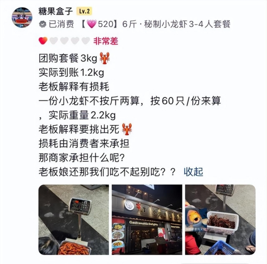 太猖狂!6斤小龙虾上桌变2.4斤,顾客投诉,老板娘:吃不起不要吃