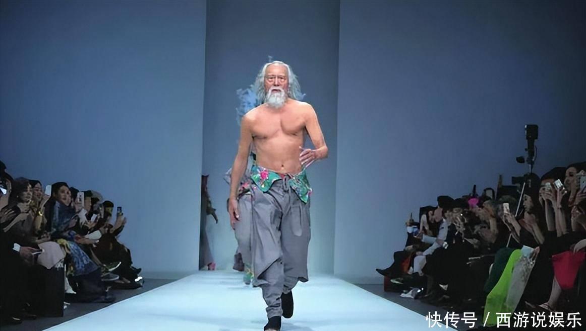 80岁的王德顺光着上身意气风发的走上T台。