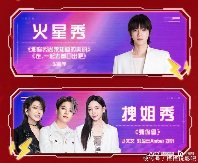 据悉,美依礼芽MARiA和罗云熙带来的跨次元合作舞台,将共同呈现《极乐净土》《化身孤岛的鲸》《起风了》三首歌曲;“对战秀”将迎来0713、南波万两大男团对决,给观众带来满满的惊喜;而“火星秀”,华晨宇将带来《那些我尚未知道的美丽》新歌首唱和《走,一起去看日出吧》两首歌曲舞台;“拽姐秀”则是浪姐组成员刘忻、刘逸云Amber、于文文展开合作,她们将一起演绎时代少年团的歌曲《要你管》,强强合作引发期待。