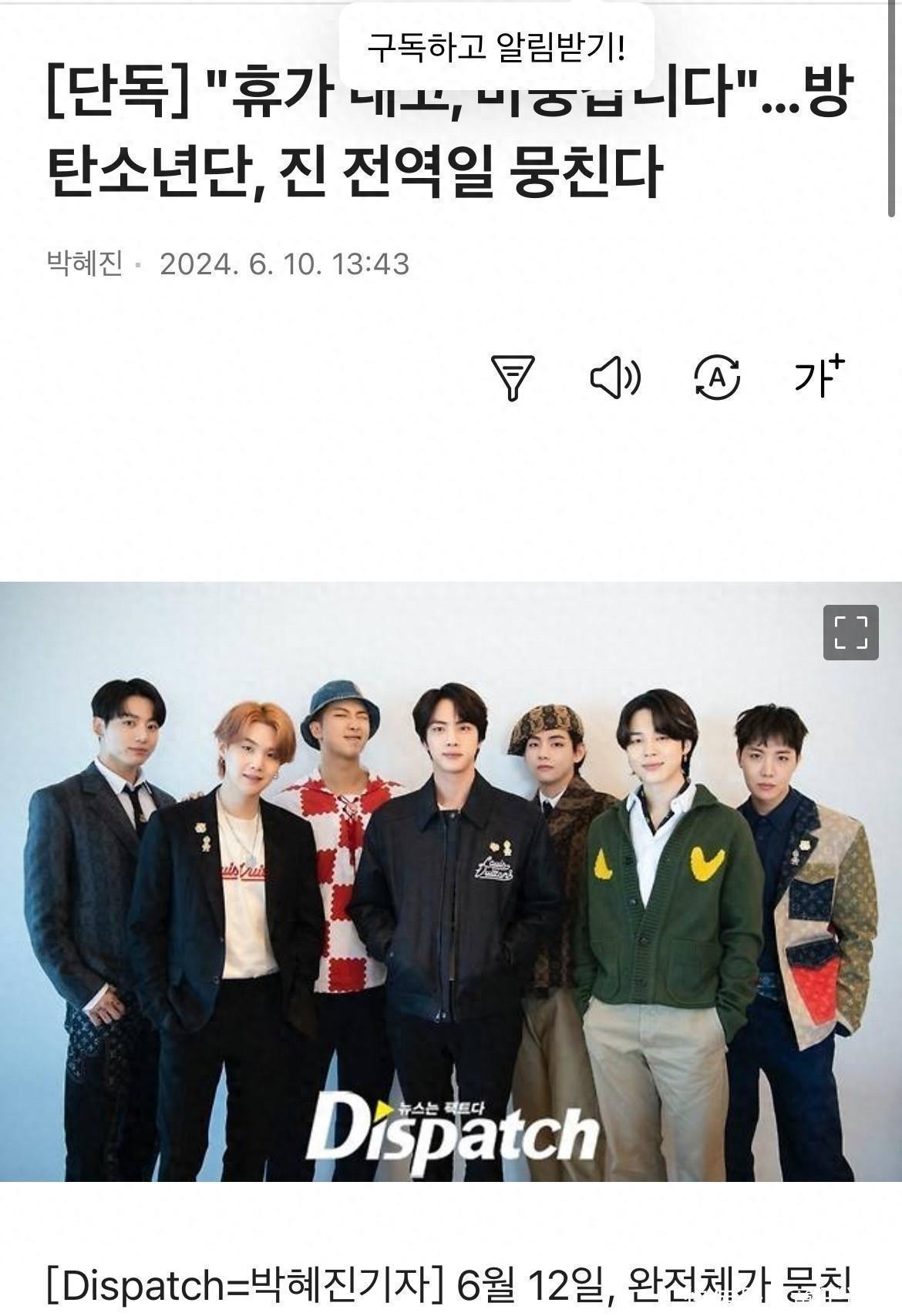 团魂满满!防弹少年团为迎接金硕珍退伍申请休假,将在12日重聚