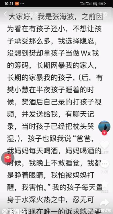越闹越大!张海波爆樊小慧曾是坐台小姐,聊天记录信息太多太炸裂