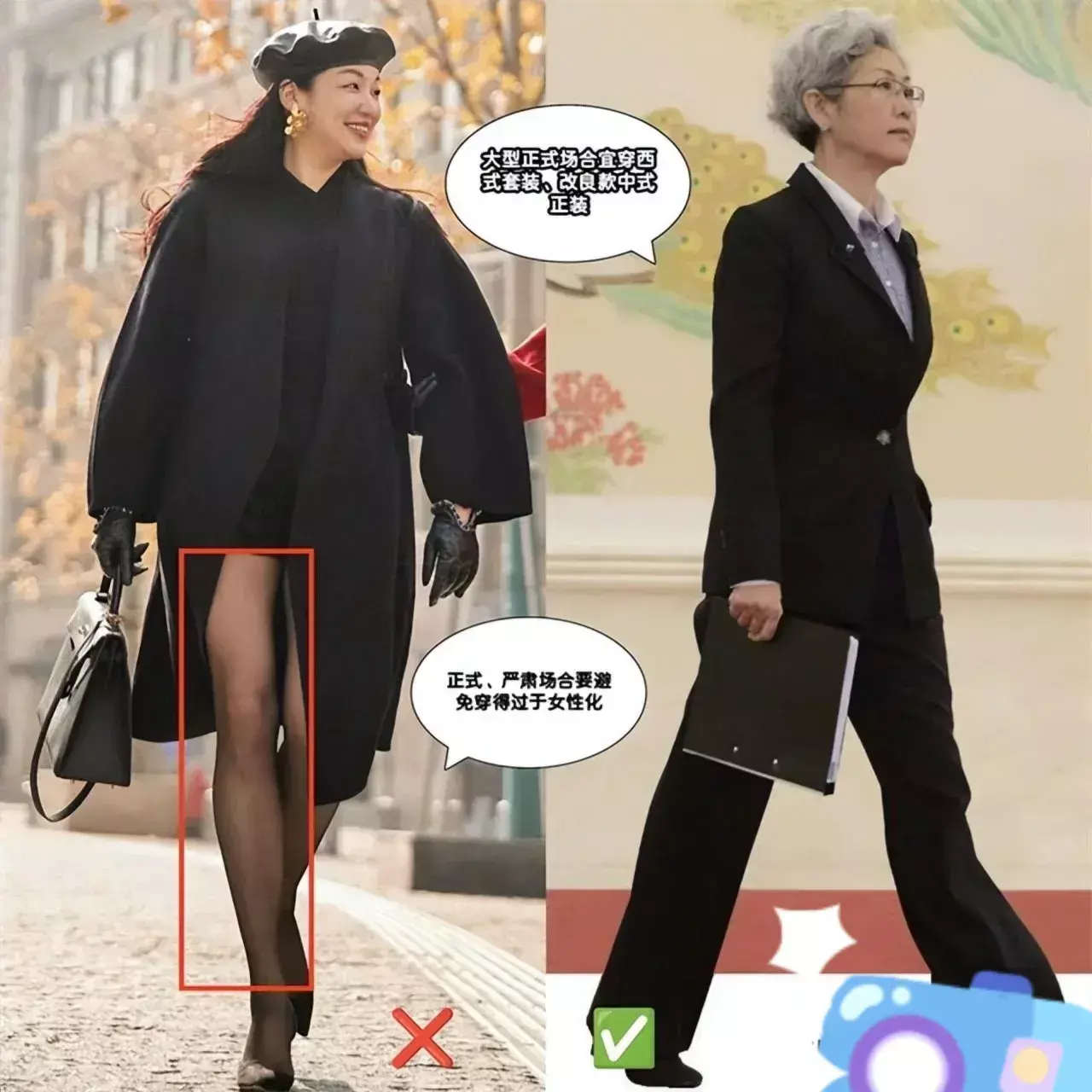 拥有大长腿是好事,穿上好衣服,单品都能显高显瘦,但是元素正式的场合要避免穿的过于女性化,这一点倒是非常好理解的。