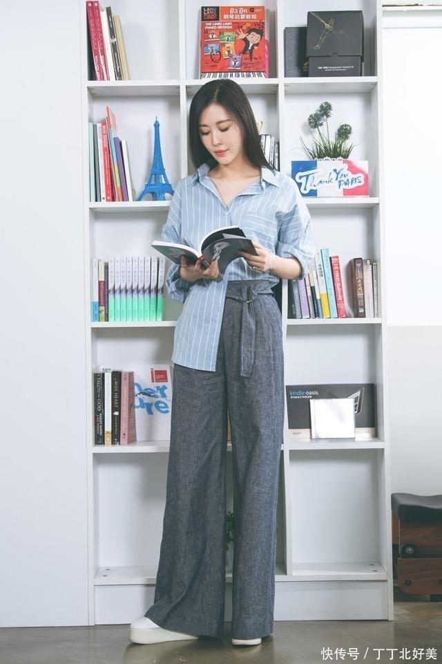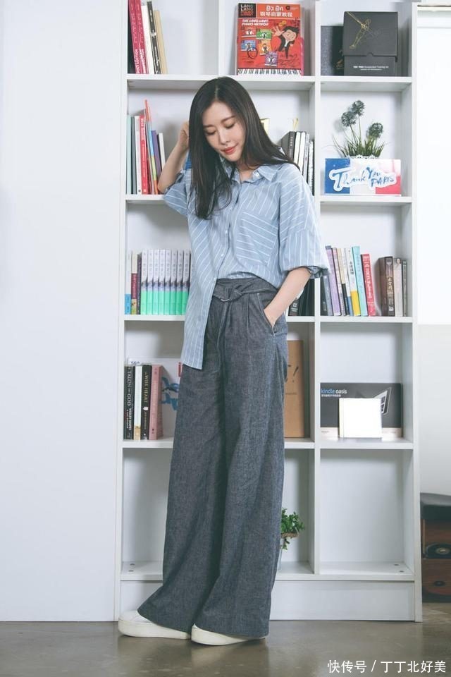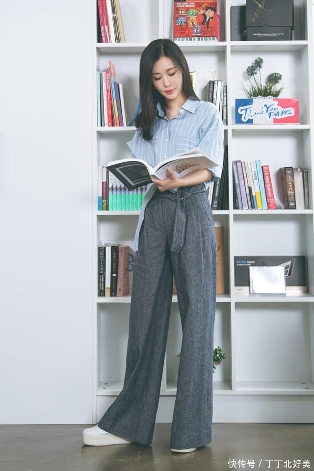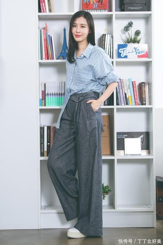 田朴珺终于不是“贵族”打扮,穿条纹衬衫+阔腿裤,简约又高级