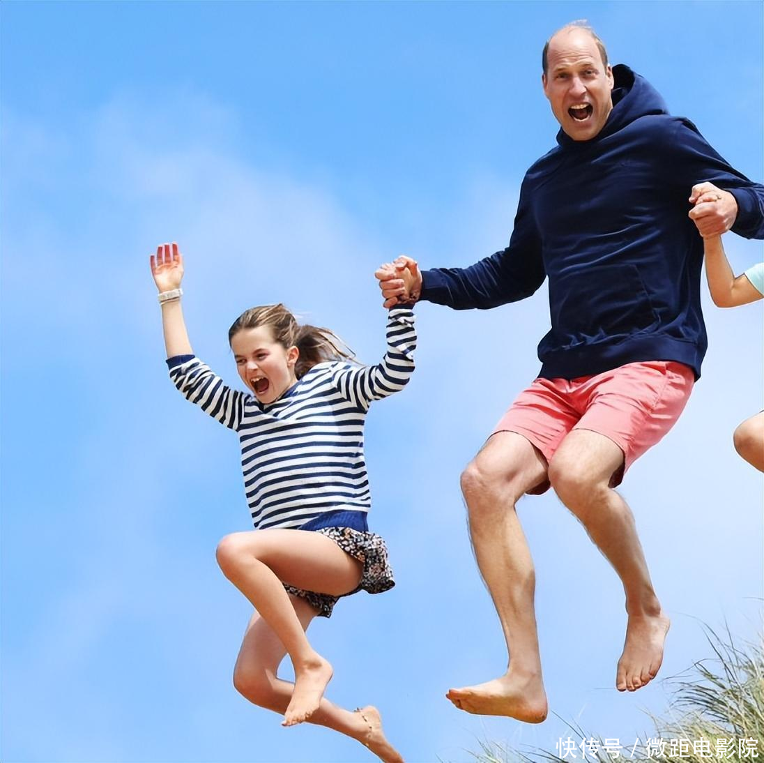 威廉王子看到女儿如此开心,也不禁放开了自己。他站起身来,挥舞着手臂,随着音乐尽情地舞蹈。