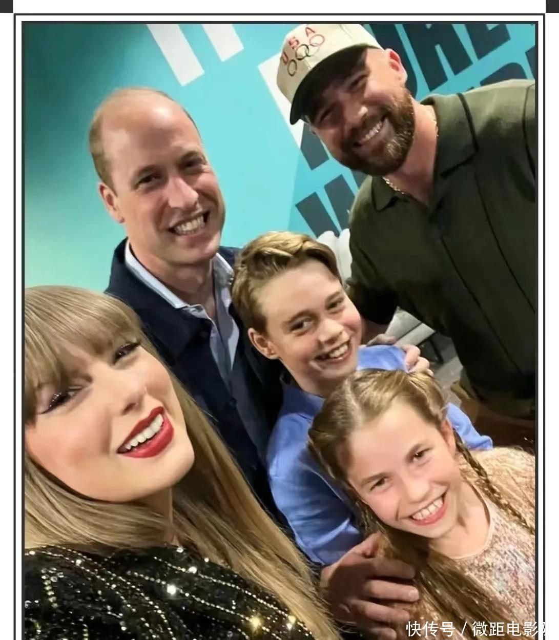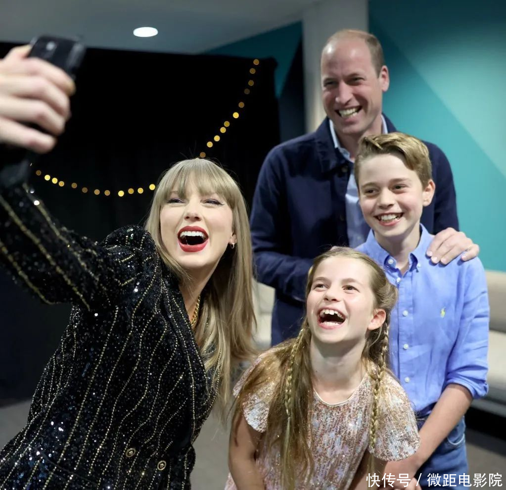就在这时,舞台上的霉霉注意到了这个特别的家庭。她向威廉王子和孩子们挥手致意,并邀请他们上台合影留念。威廉王子欣然接受了这个邀请,带着乔治王子和夏洛特公主走上了舞台。他们与霉霉一起合影留念,留下了这个难忘的时刻。