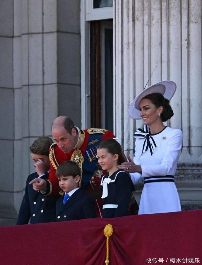 路易王子在夏洛特公主前尬舞,还被姐姐教训,凯特看到后面带微笑