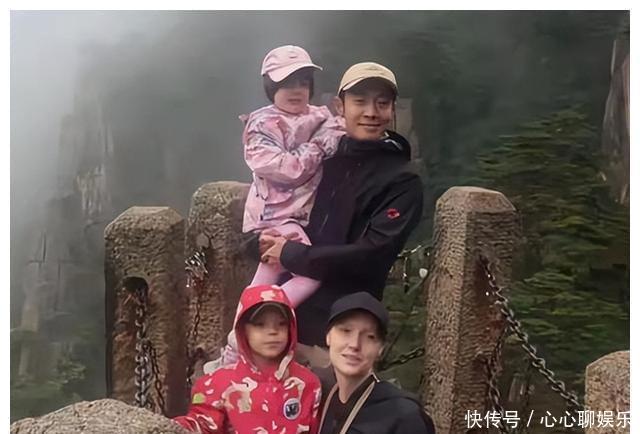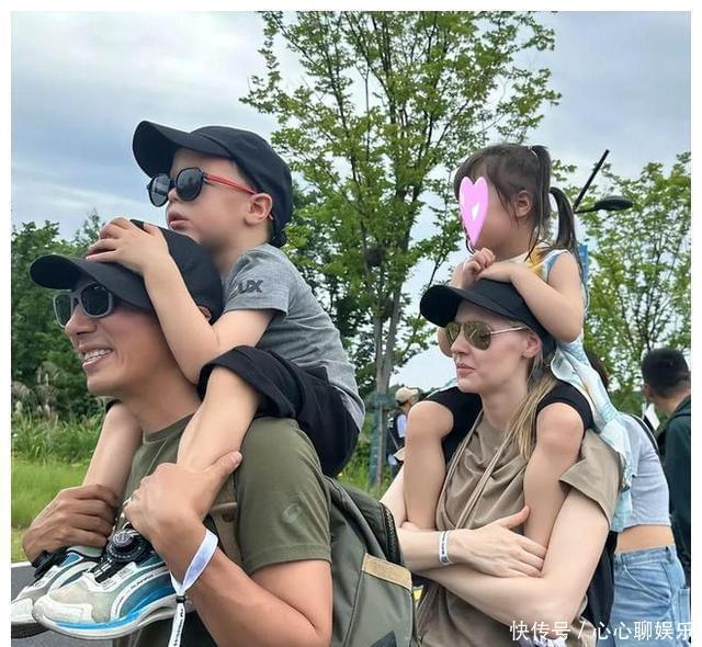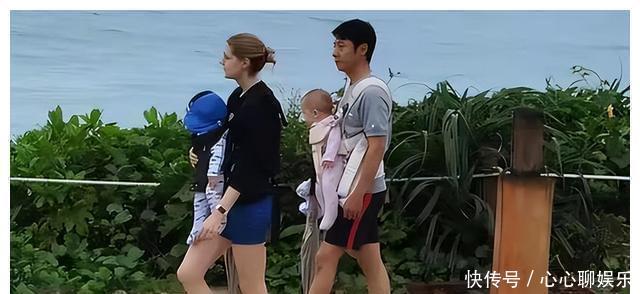 撒贝宁一家,妻子李白人高马大,龙凤胎女儿比儿子高出很多。