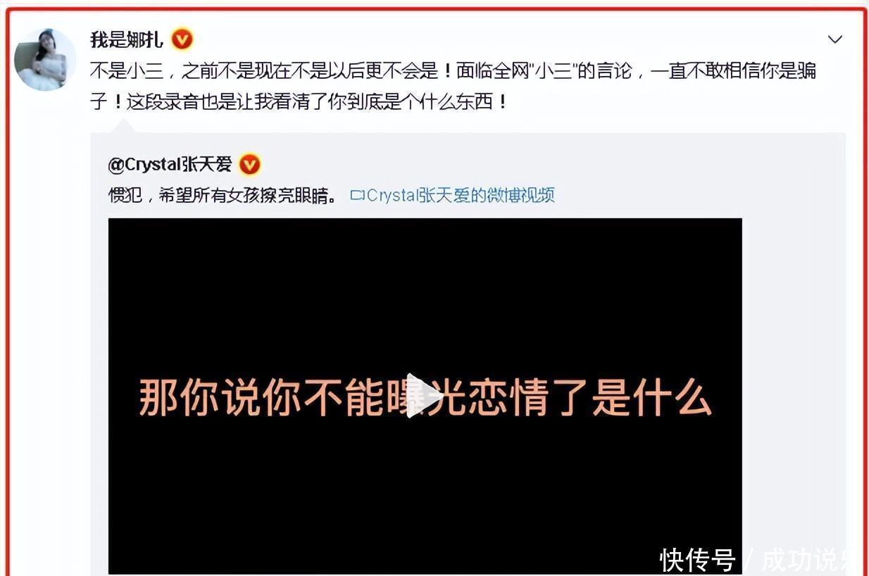 事情愈演愈烈,小三的称号几乎要实锤了,张天爱突然曝出徐开聘出轨证据,证明了古力娜扎也是受害者,并不是“知三当三”。
