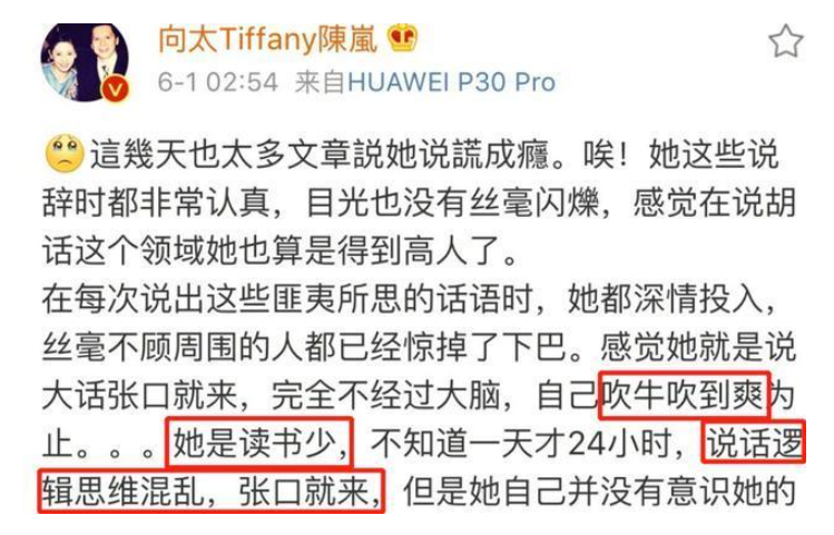 连向太都忍不住发声,对张柏芝的行为表示不满,可见其影响之恶劣。