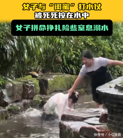 俩闺蜜相约去游山玩水,结果玩着玩着就较上劲了,体态偏胖的女孩直接将体型瘦弱的闺蜜死死的按在水中,在她看来这种行为是闺蜜之间互开玩笑,但是将闺蜜按在水中长达十几秒,并且闺蜜呼救也不松手,这玩笑开的实在是太过了吧。从现场的情况来看,黑衣女子的行为极其危险且不负责任。原本闺蜜之间在水中嬉笑打闹是正常的,但她却因为某种原因失去了分寸,将玩笑演变成了可能危及对方生命的举动。