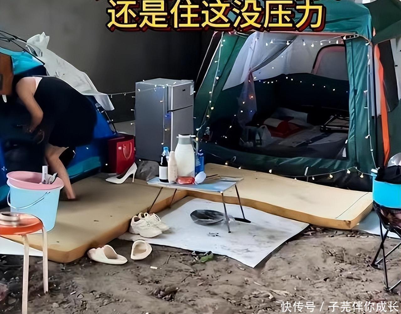 上海“富婆”睡桥洞,冰箱风扇都有,一日3餐精致,彩色帐篷浪漫