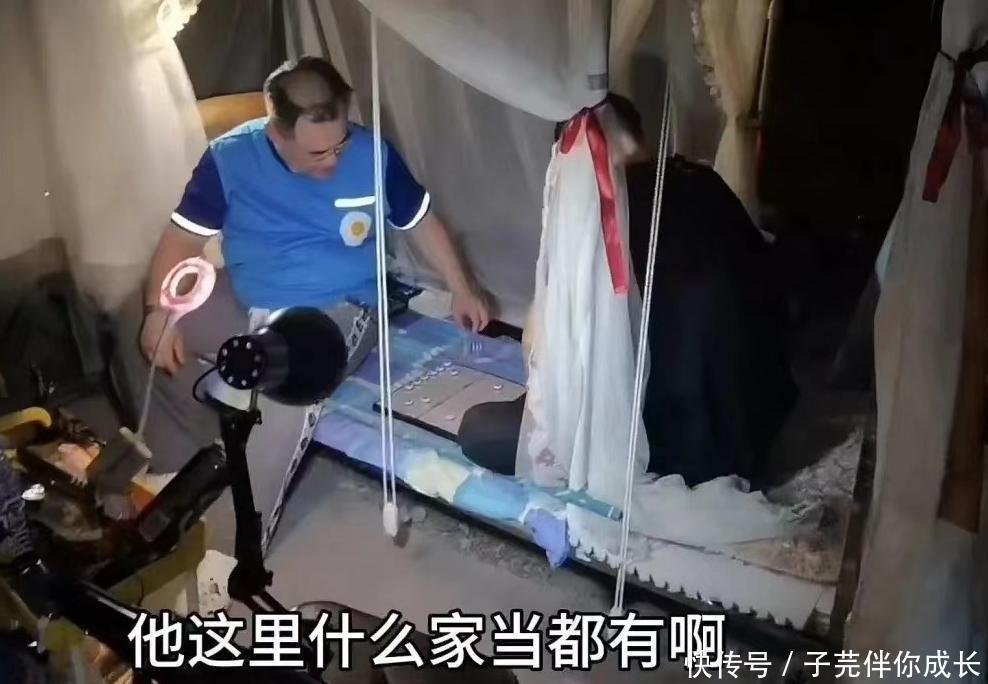 他捡了一张高低床,挂了一张蚊帐,很好地隔离了蚊子。