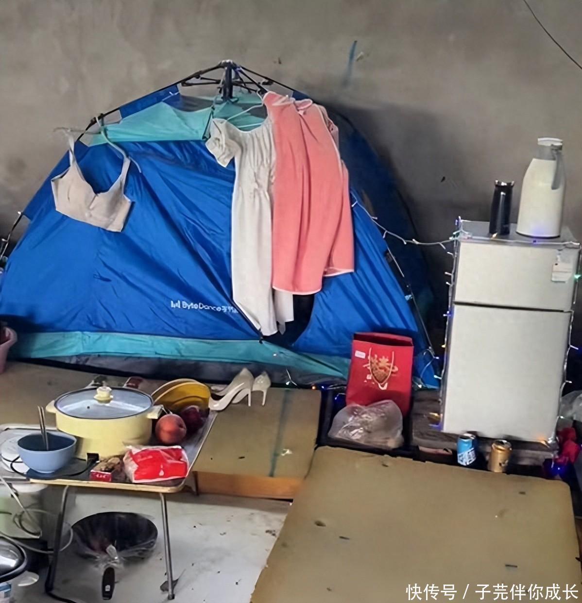 由于没找到合适的工作,一个月1500的房租成了负担,她偶然发现了这个桥洞,就买顶帐篷搬了过来。