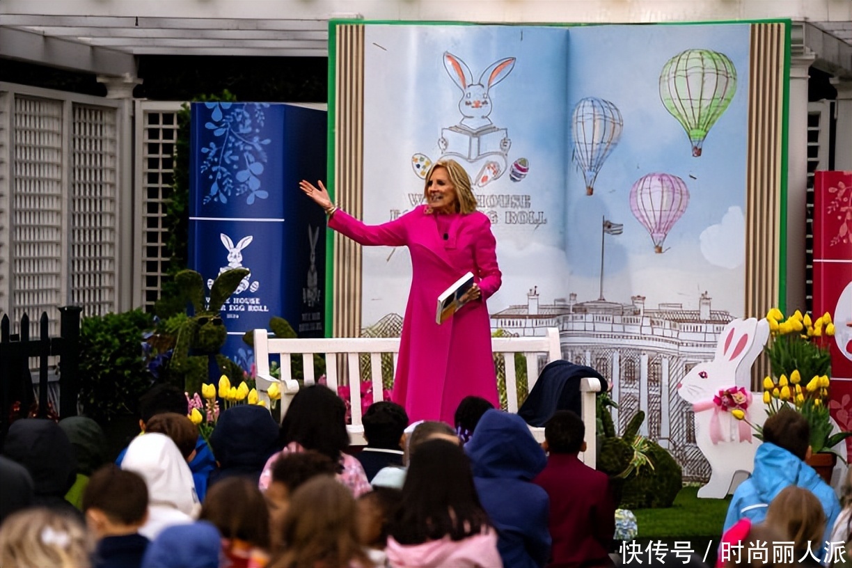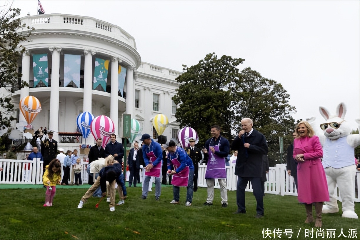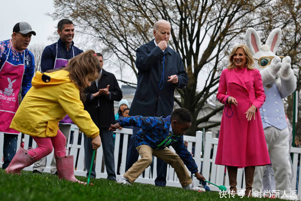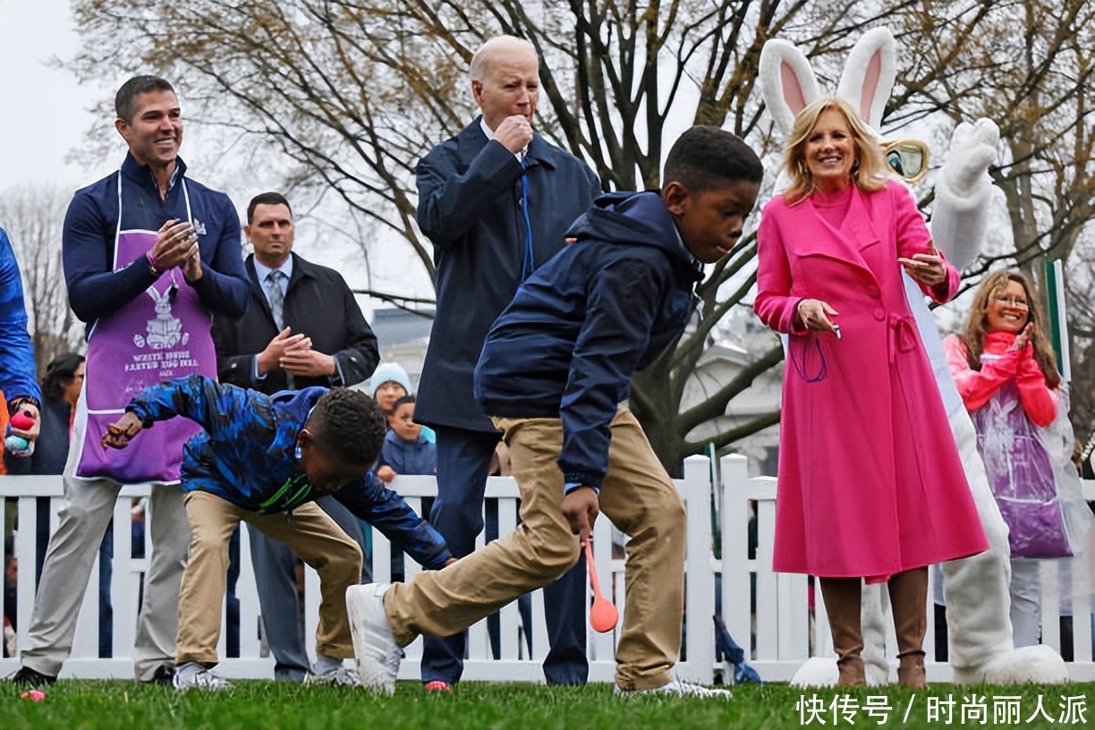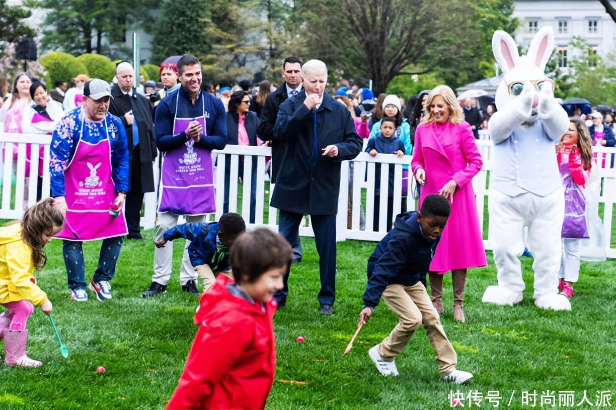 拜登夫妇在白宫庆祝复活节好欢乐!充满童趣,夫人穿粉色大衣惊艳