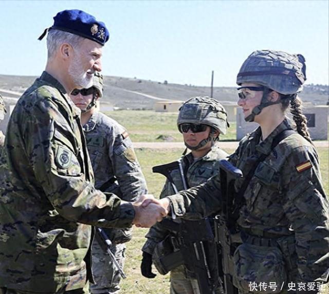 西班牙国王军校看望长女!19岁莱昂诺尔素颜穿军装,太飒爽英姿了