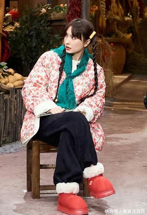 “东北屯花”吴昕花棉袄绿围巾怀旧气息满满,换成金色卷发大变样
