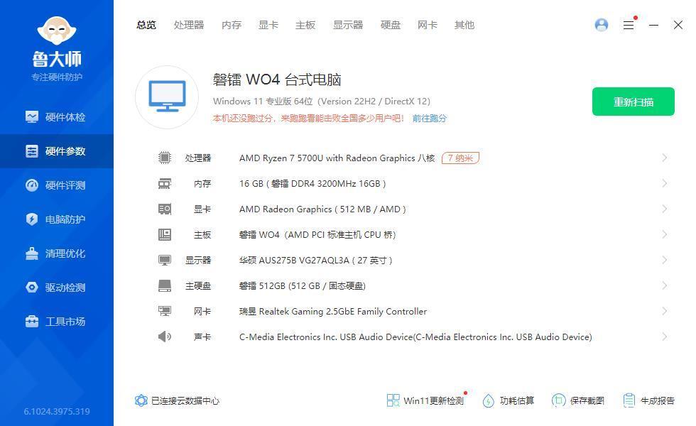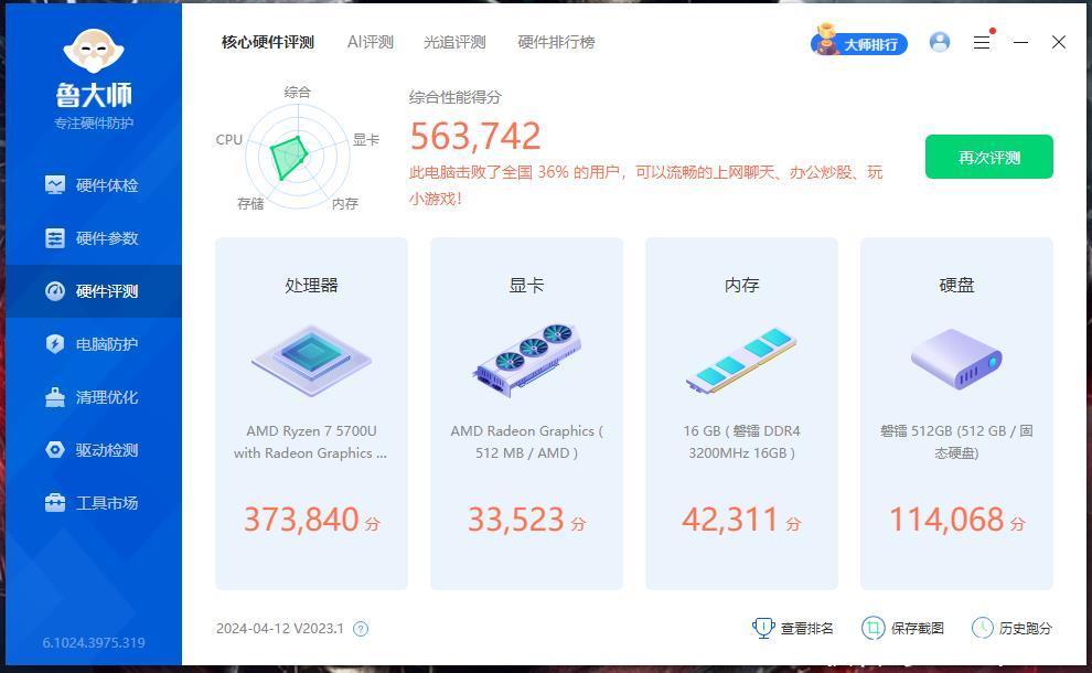 进入系统之后,先来看一看磐镭WO4迷你主机的配置吧,AMD锐龙5700U的CPU,8核心16线程,基准时钟频率为1.8GHz,最大加速时钟频率可达4.3GHz,并集成了AMD Radeon Graphics核显,对于日常办公娱乐都能轻松应对。我所选购的磐镭WO4迷你主机是16G内存,512G硬盘。