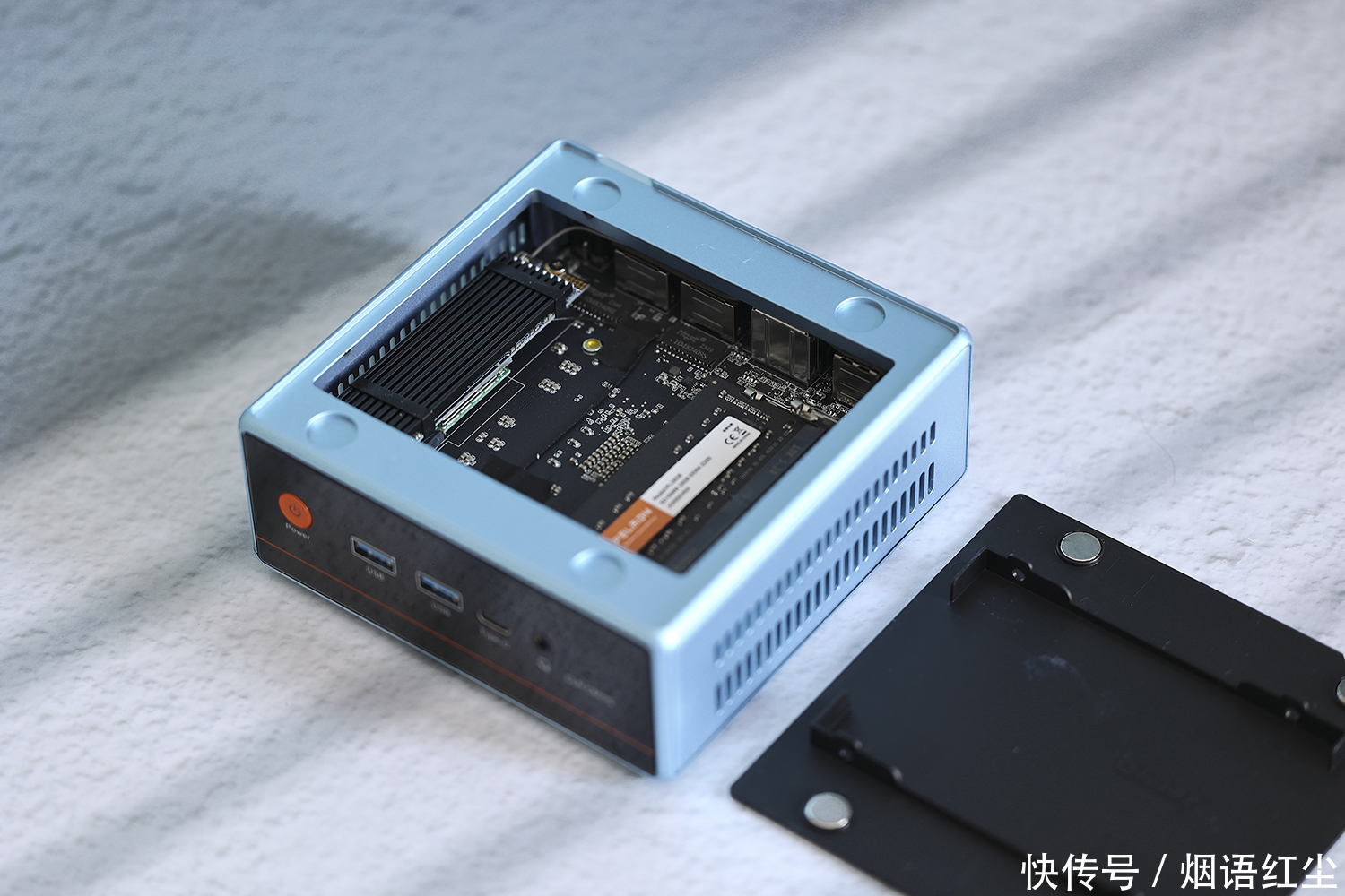 磐镭WO4迷你主机采用了创新的磁吸式顶盖设计,一掀就可打开顶盖,内部配件尽现眼前,后期升级时,无论是更换内存,还是扩容硬盘,都能轻松操作,小白用户也只需要拧下几颗螺丝就能搞定。