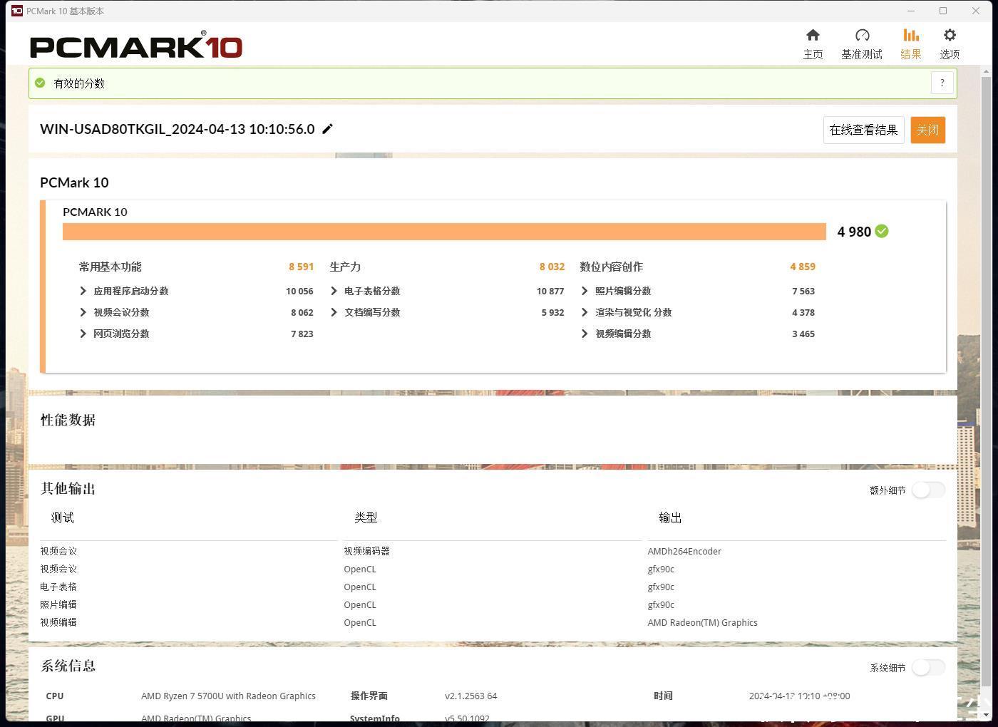 再来使用PCMARK 10做一个更专业的测评,磐镭WO4迷你主机的最终得分为4980分。大家都知道,对于PCMARK 10的分值来说,达到4500分时,办公娱乐就能完全胜任,并且非常流畅了,而磐镭WO4迷你主机分值达到4980分,就更加得心应手了。