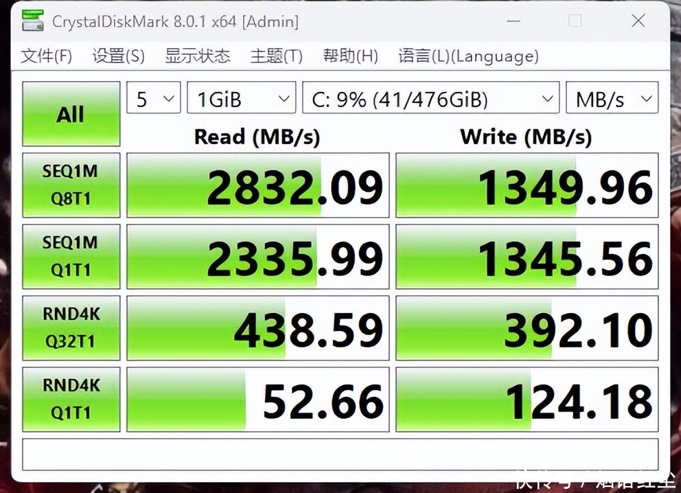 磐镭WO4迷你主机的硬盘支持最新S.M.A.R.T.硬盘保护技术,也支持VolatileWriteCache功能和TRIM指令,具备很好的自我监测、分析、预警及报告功能,使用更加放心,也不用担心误擦除。使用CrystalDiskMark 8软件测评,读取速率为2832.09MB/s,写入速率为1349.96MB/s。