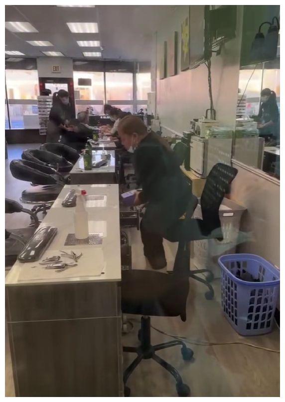 而凤姐所在的工作地点则是一家美甲店,当时的她应该刚刚结束上一名顾客的服务,只见她收拾好东西就离开了位置。