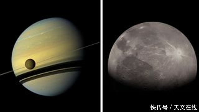 左图是土卫六和土星的合照,右图是木星的一个卫星。(图源:NASA/JPL-Caltech/SwRI/ MSSS/ Kalleheikki Kannisto/ Space Science Institute)