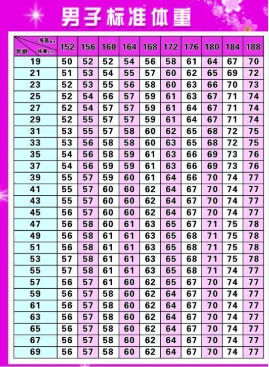 男性“152-188cm标准体重对照表”公布,若你达标,说明并不算胖