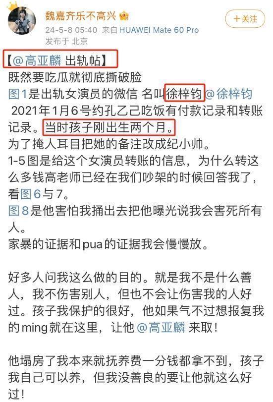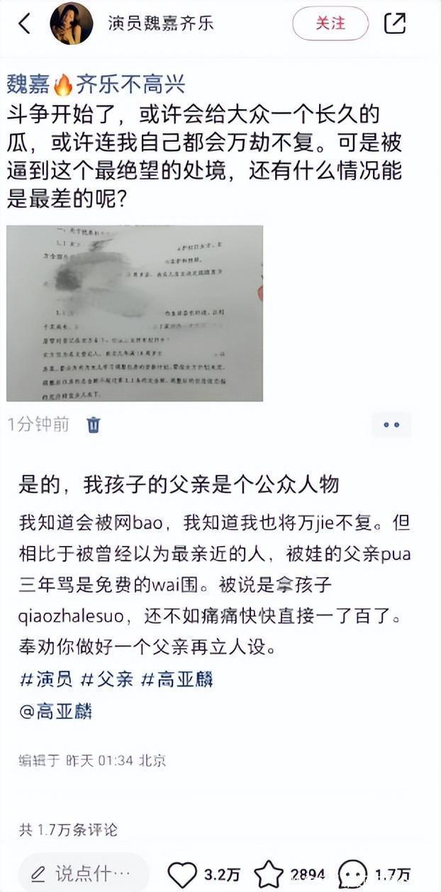 高亚麟魏嘉抚养协议曝光!两人疑似财产分配闹翻,私生子现已四岁