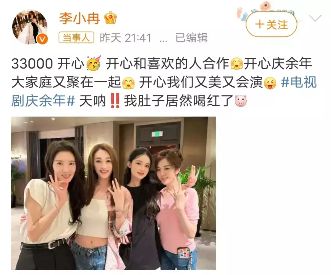 5月17日,李小冉还在社交平台发布了自己与《庆余年》其他三位女演员的合影。