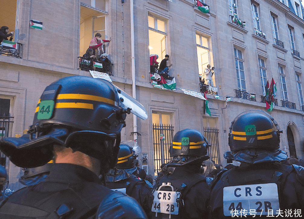 巴黎政治学院是法国大学生反战抗议的风暴眼。当地时间26日,高校林立的巴黎七区爆发学生抗议事件,几十名来自巴黎政治学院的学生聚集在学校门口,手举巴勒斯坦国旗,高呼亲巴勒斯坦口号。下午4时左右,上百名巴勒斯坦支持者和部分政客加入学生抗议。