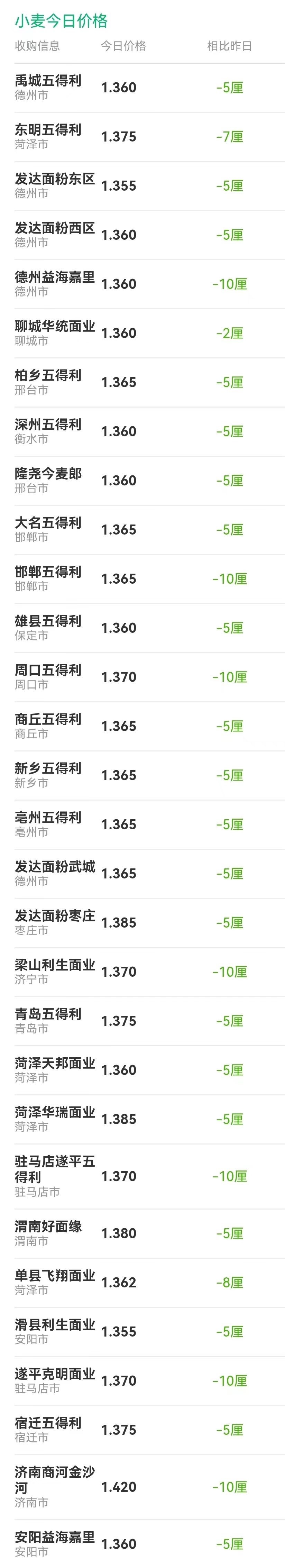 因此,在多空博弈下,小麦行情受限,价格呈现偏弱调整的走势,山东、河北以及河南等地,主流小麦产区,制粉企业挂牌价格在1.36~1.39元,多地企业落价幅度在0.5~1分/斤!