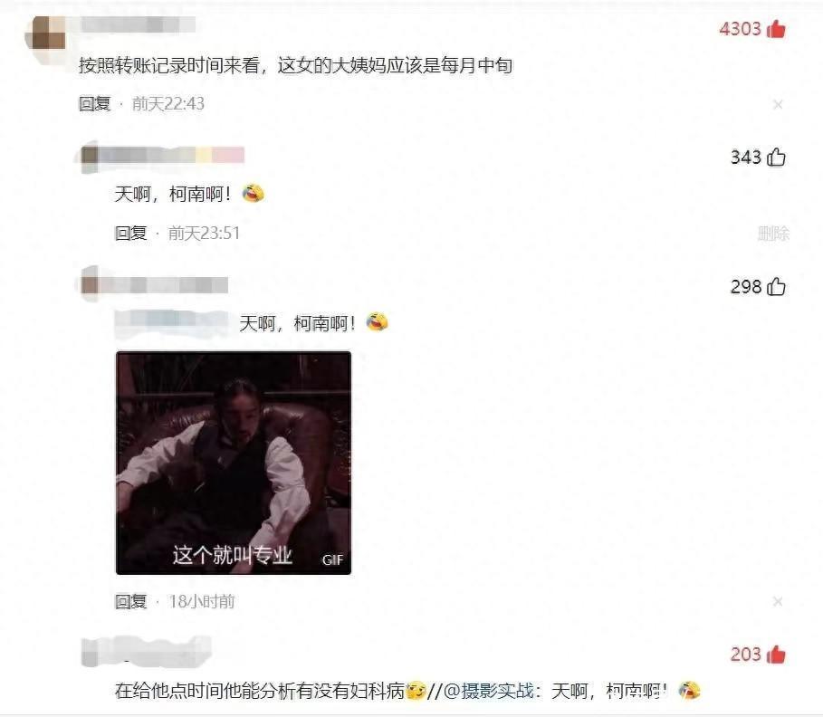 “按照转账记录时间来看,这女的大姨妈应该是每月中旬!”