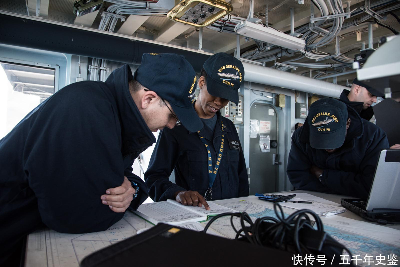 在驻舰的官兵之中,已有女兵上舰。建造商海试对舰体系统的测试动作包括:我们前面看到的高速转向;进行最高航速的测试,主要是看是否达到军方的速度要求,船早造得好可超过设计参数,但也有不达标的;骤停,即“福特”号开到最大航速时,以最快的速度突然减速至0航速;“福特”号其他舰艇性能要求测试。