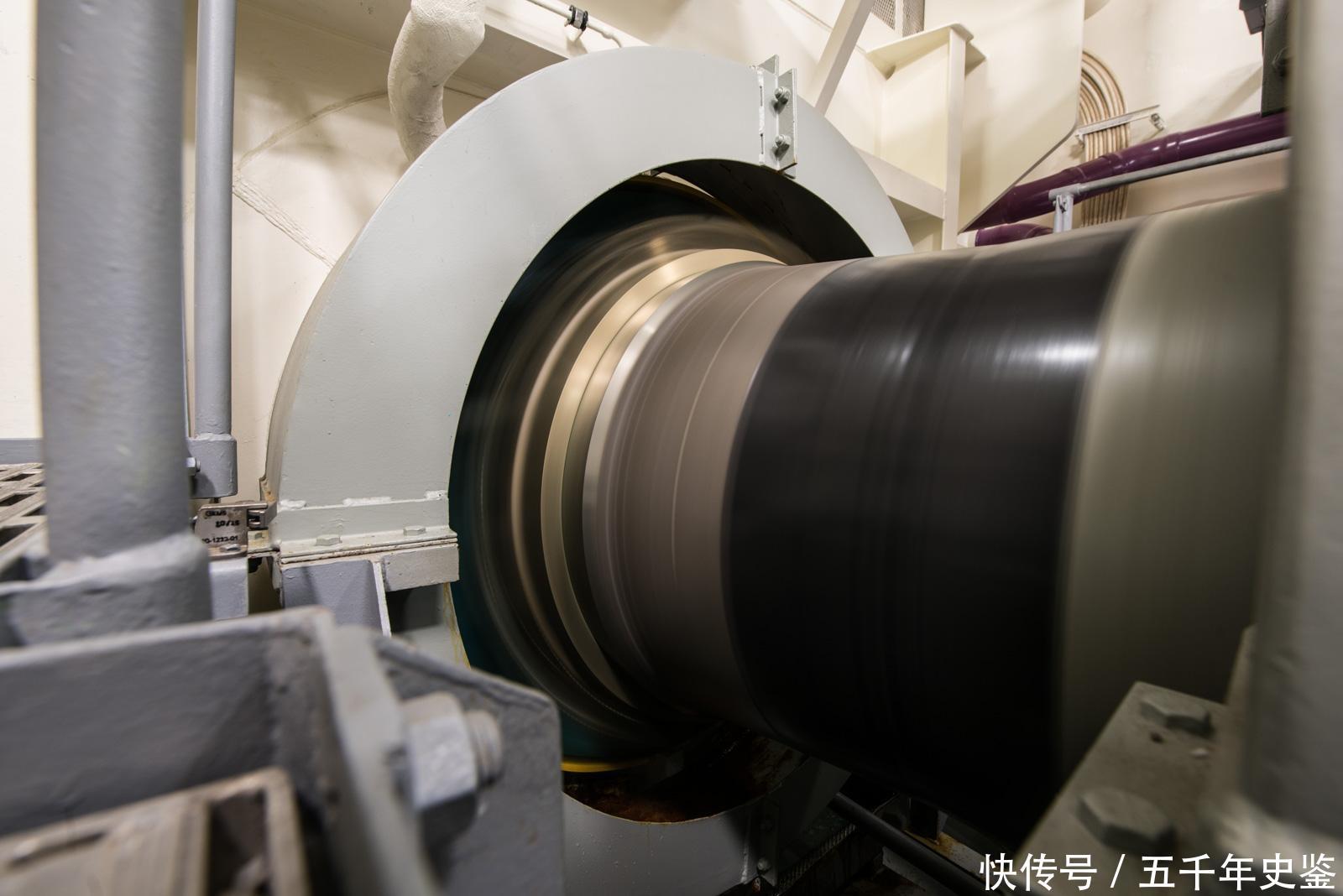 飞速旋转的大轴。“福特”号航母的动力是两台A1B核反应堆,共安装有4根大轴,从舰体的中部一直延伸到舰尾。这四根大轴不是整体建造的,总共是前后两段进行拼接。通过带动4部螺旋桨,“福特”号的航速可以达到30节以上。