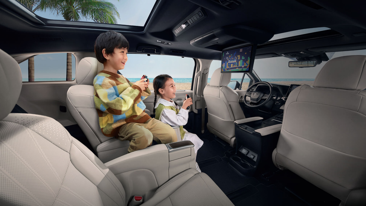 与此同时,2024款的赛那后排还搭载了双层玻璃,可以显著地提高车内的隔音效果,提升车内的静谧性,为乘员营造一个安静的座舱空间,让老人和小孩在车内也可以更好地休息,不受噪音的打扰。