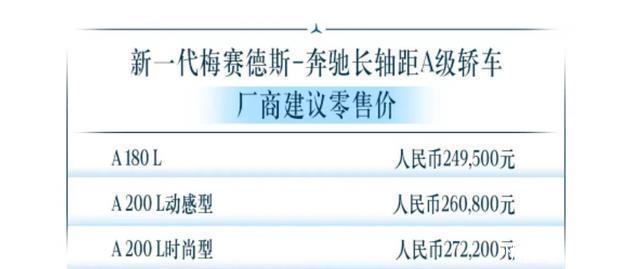 新车 售价24.95万-27.22万元,新款梅赛德斯-奔驰长轴距A级上市