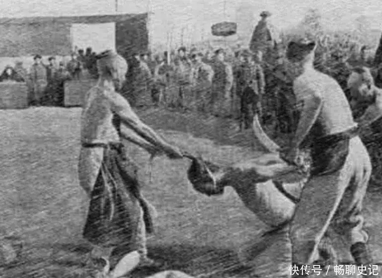 上色老照片:直击镜头下真实的斩首现场,义和团罪犯被五花大绑