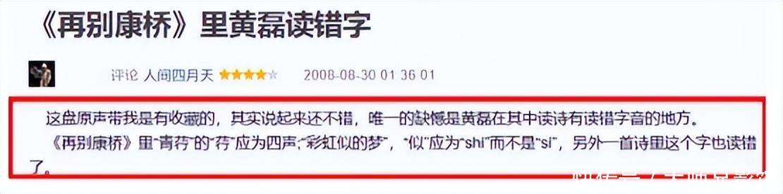 作为曾在影片《人间四月天》中出色演绎过徐志摩的黄磊,竟连徐志摩代表作的读音都读不准确,委实令人大跌眼镜。