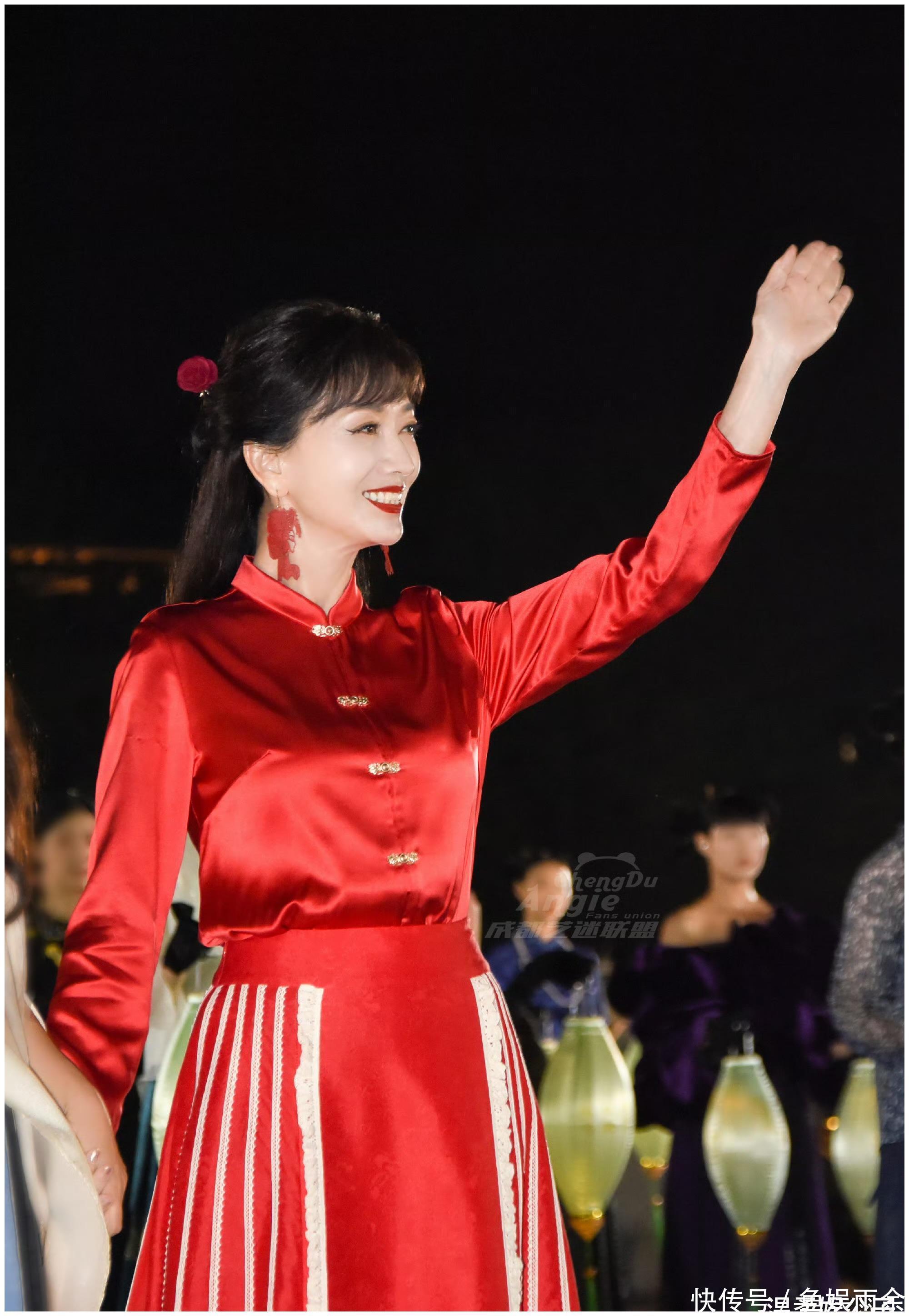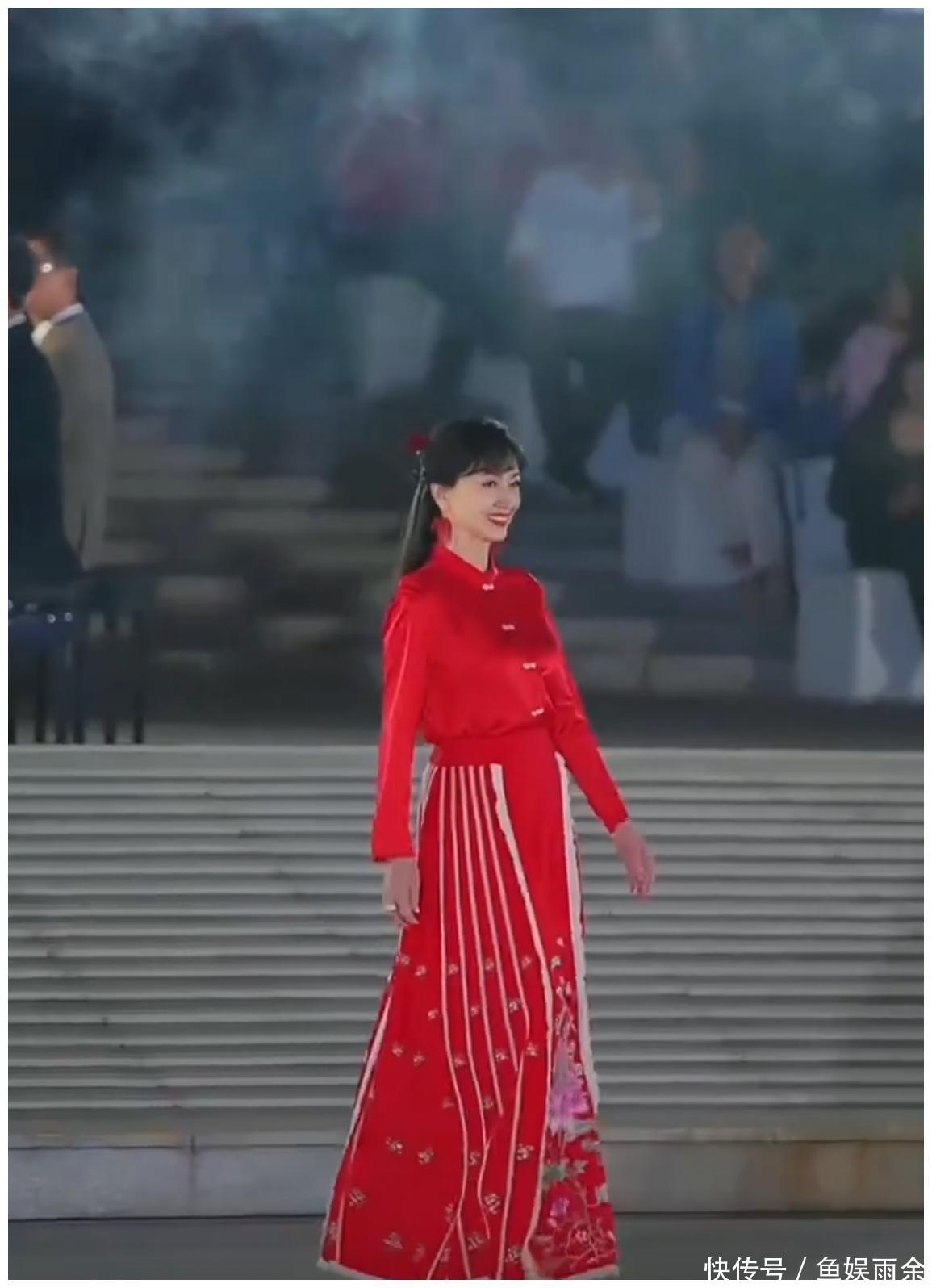 中式大美人赵雅芝穿新中式,简直“专业对口”,轻松驾驭大红色马面裙,梳着简单的公主头,黑发披肩,笑容大方,体态轻盈。