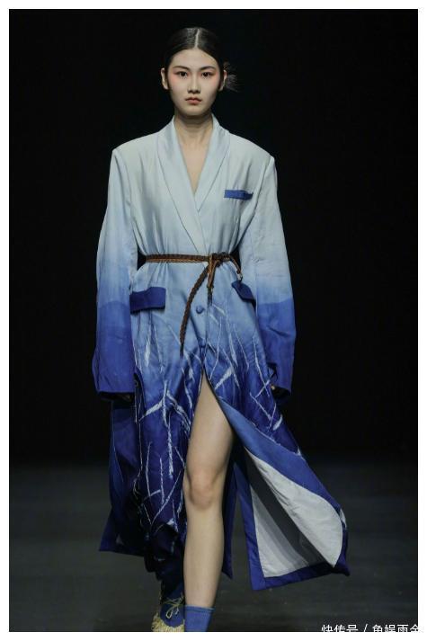 头和肩膀一点不动,没有表情,一口气走完,明明是让观众把目光放在衣服上,可偏偏大家又注意到他这张脸。