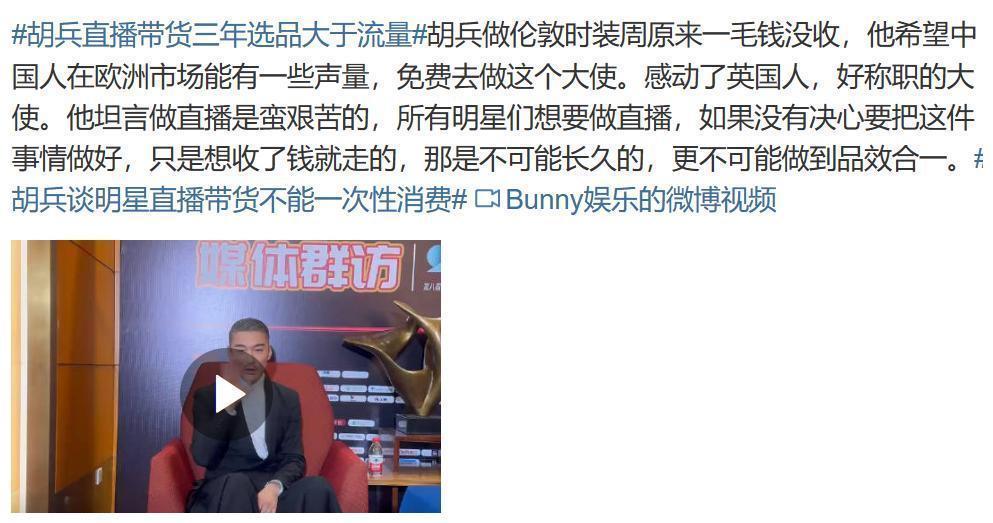 谈及风口的直播带货,直言:不能收了钱就走,品控大于流量,未来10年,他会努力把国产品牌推到国际上去。