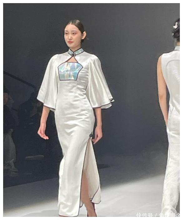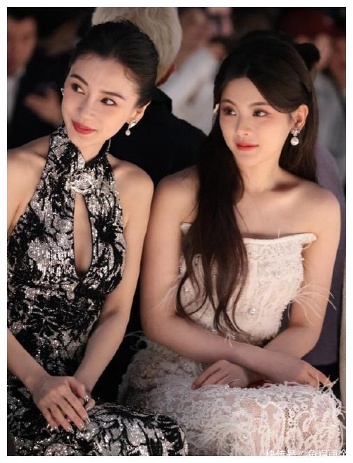 她和杨超越同款看秀,两人都着新中式服装,不过小杨的白色抹胸裙,怎么看都和国风相差甚远,倒是杨颖的旗袍,小露春光之余,更衬气质稳重了些。