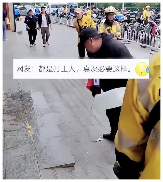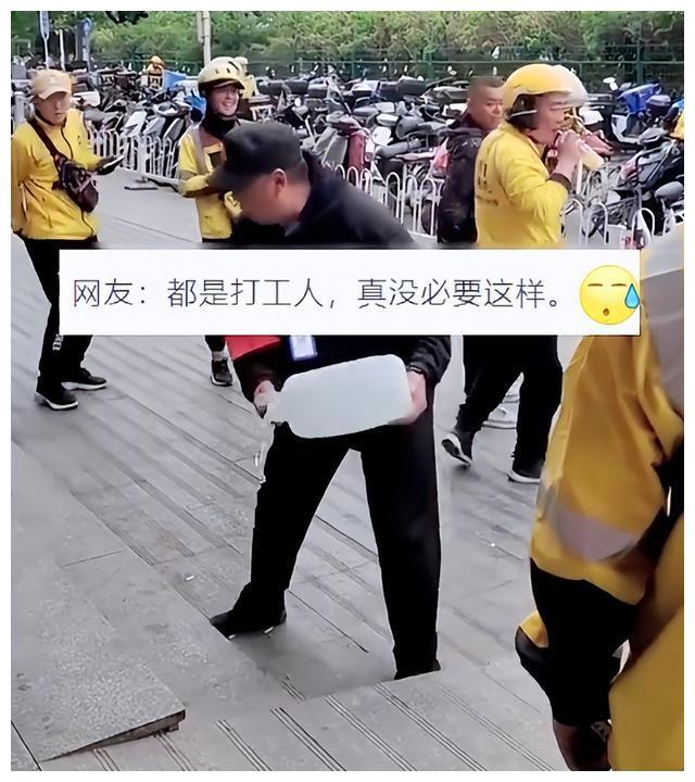 近日,有北京网友就拍摄到这样奇葩的一幕,有两名外卖员坐在路边的台阶上休息,没想到遭到一名穿有保安服装的男子驱逐,为了不让外卖员在台阶上休息,竟然提着一桶水故意把台阶打湿,不得不说这样的手段实在太无语了。