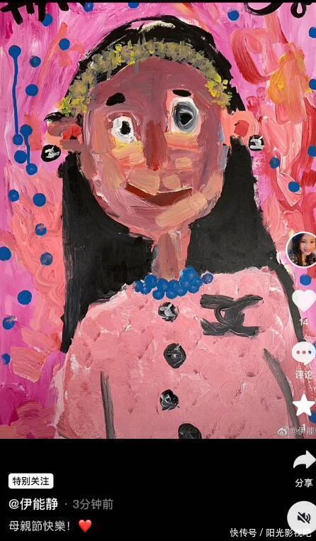 伊能静母亲节获女儿赠画,儿子祝福,秦昊发红包宠妻数额并不多