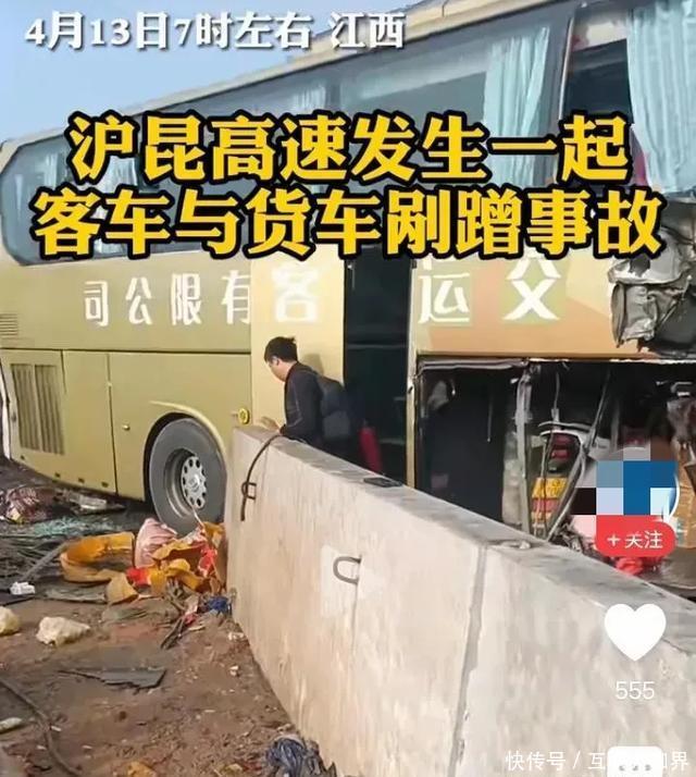 突发!江西沪昆高速大客车与货车相撞。现场惨不忍睹!
