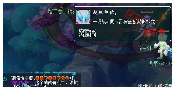 在梦幻西游中有一些任务的战斗并不是需要各位玩家把怪物击败,而是硬生生的扛过几个回合,上面这位玩家发成就时就表示自己是靠5个人和宝宝硬扛了7个回合,其中召唤兽承受的伤害特别高,因为上面这位玩家的召唤兽居然连续神佑了7次。然后就获得了上面的这个成就。